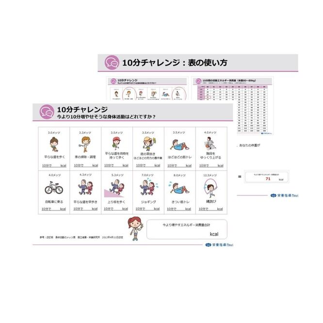 10分身体活動を増やした場合のエネルギー消費量の記入ができます